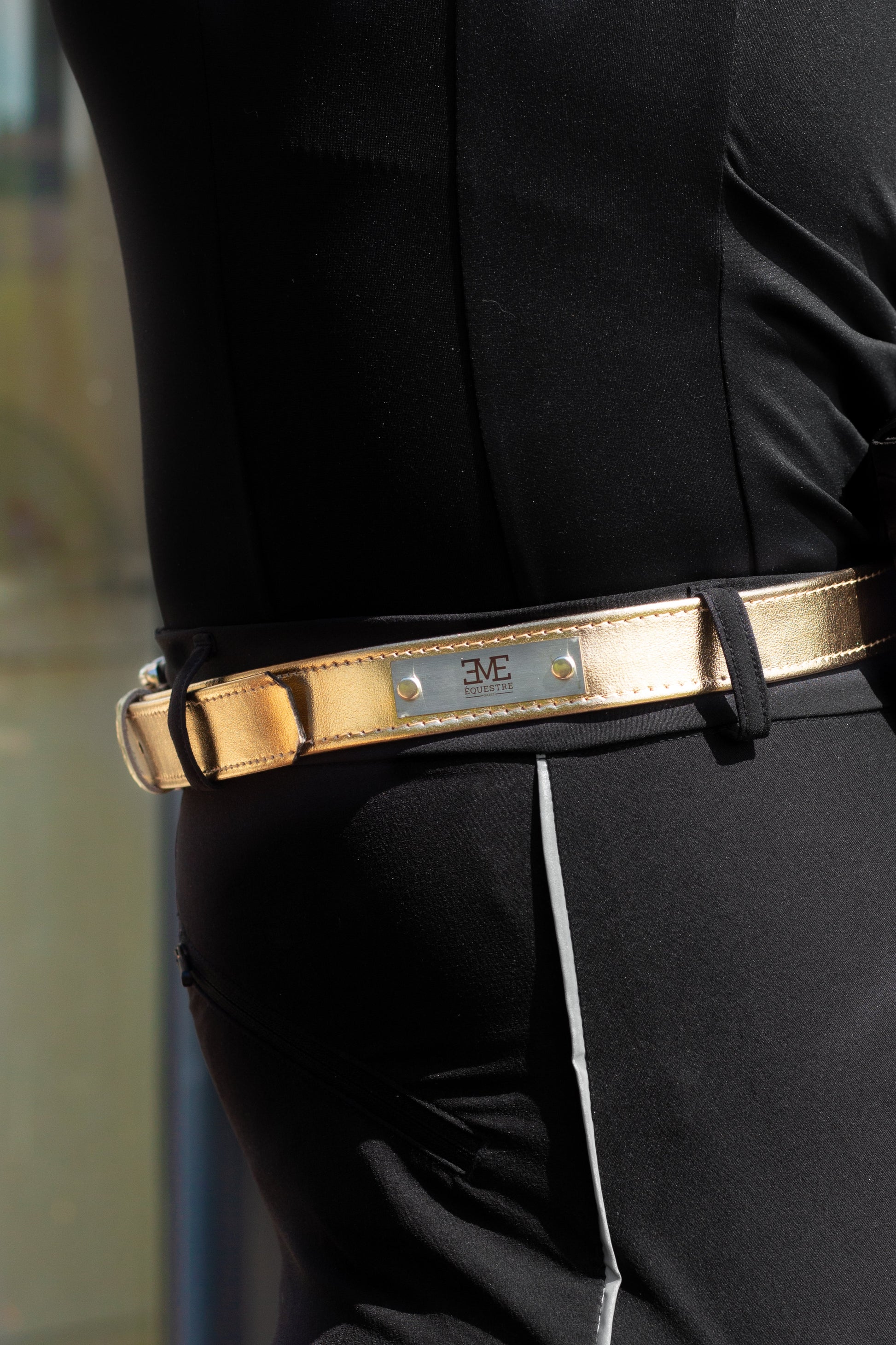 EME Équestre introduces its new limited edition rider's belt, crafted in Milan, Italy with the highest standards of quality. Made from 100% cowhide leather, with a sleek and sophisticated finish, silver hardware that gives a touch of distinction and a bit-shaped jewel that gives it a touch of elegance. This belt is perfect for riders of all levels, from beginners to professionals, and is available in two colors: gold and silver. Don't miss the chance to have this exclusive belt in your equestrian equipment.