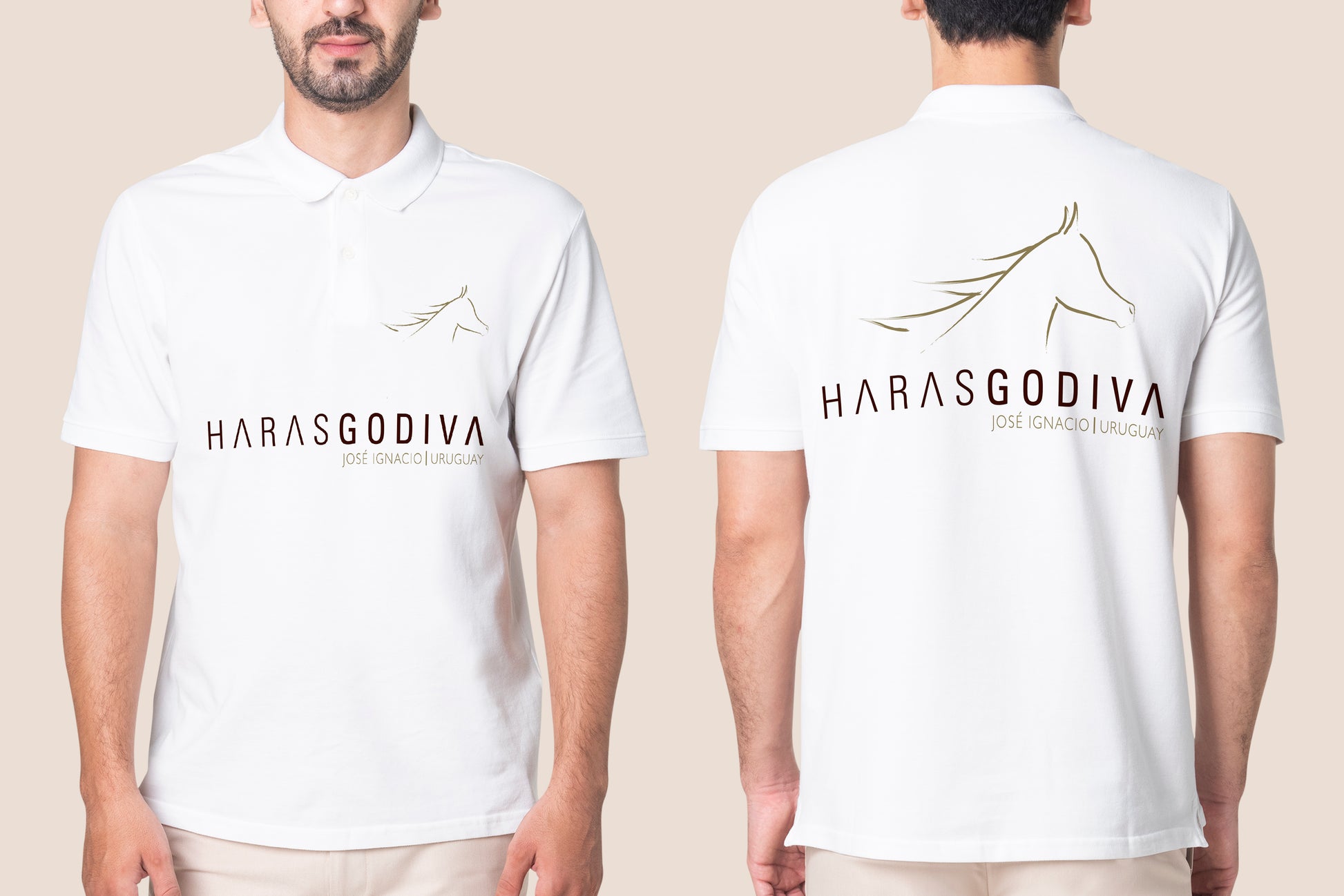 The ultimate polo shirt for equestrian enthusiasts: Our White Polo shirt with the Haras Godiva logo prominently displayed on the front and back. This shirt is made from a high-quality, breathable fabric that will keep you cool and comfortable during your ride. The classic white color and clean design make it the perfect choice for any occasion, whether you're training at the stable or competing in a show. The logo is made with precision, ensuring that it will remain vibrant and intact after multiple washes.